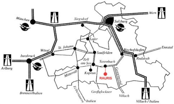 2. Autobahn München - Richtung Salzburg - Abfahrt Siegsdorf - weiter Lofer - Zell am See - Taxenbach - Rauris